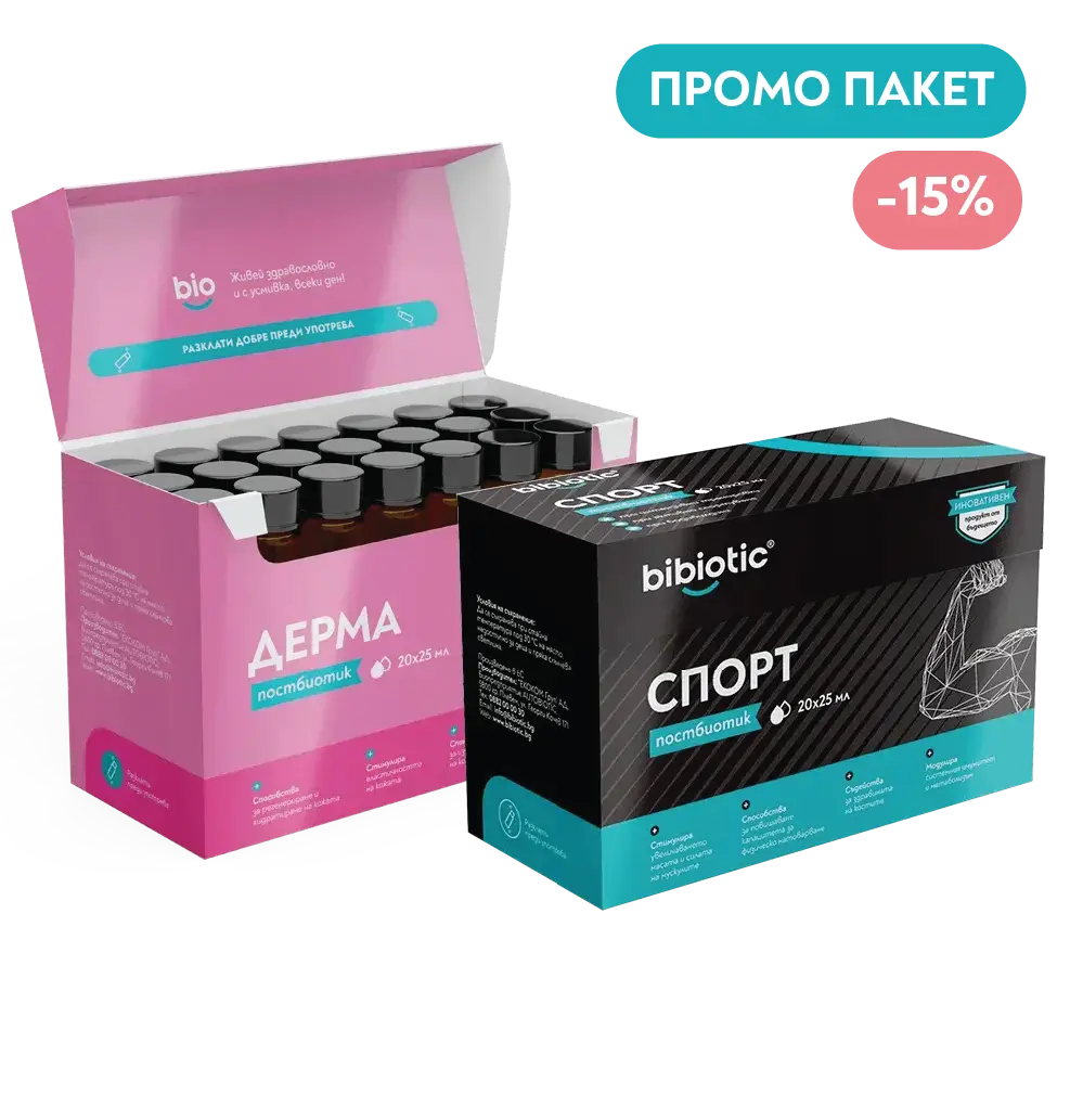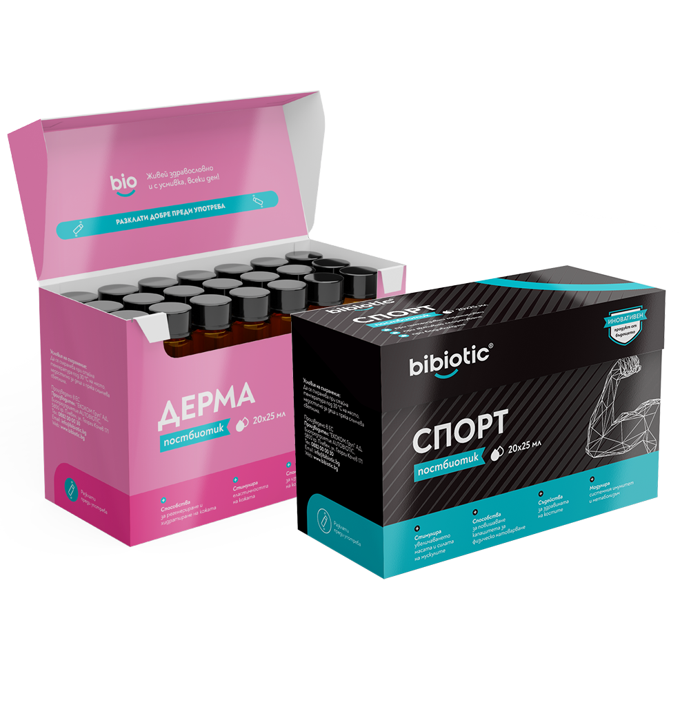 Комбинацията на Bibiotic® Дерма и Bibiotic® Спорт осигурява пълноценна подкрепа отвътре – за здрава кожа, балансирано храносмилане и повече енергия.