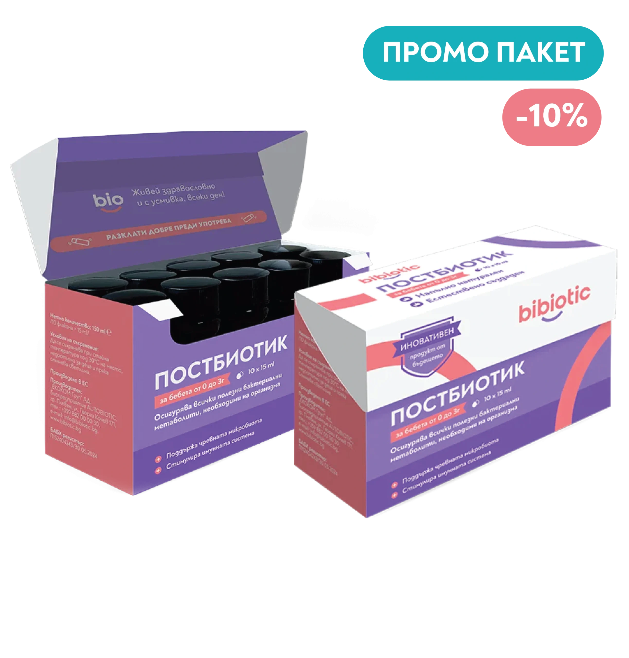 Промо пакетът е практично решение за ежедневна и продължителна грижа за бебешкия комфорт и имунна защита.Подходящ е от първите дни след раждането, при колики или при нужда от възстановяване на чревния баланс по време на и след антибиотично лечение.