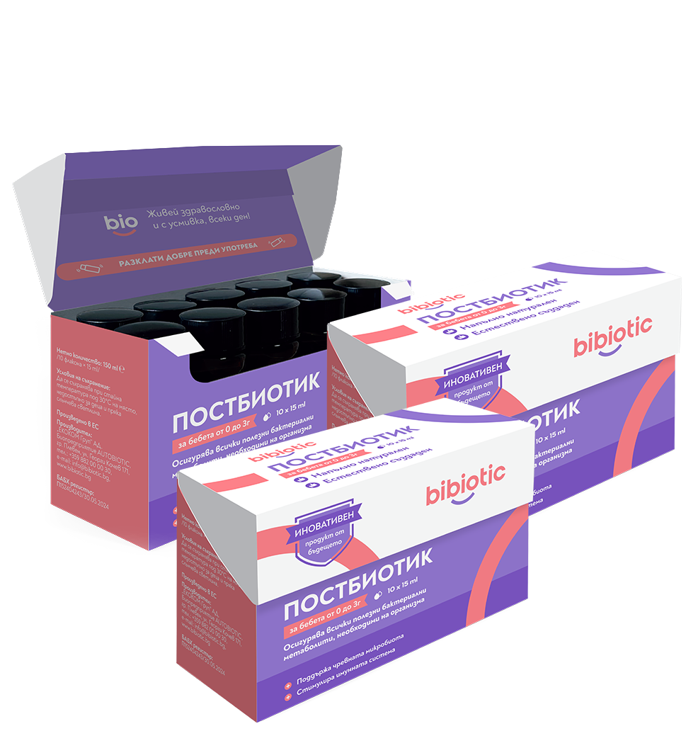 Bibiotic® за бебета (0-3г.) е постбиотична хранителна добавка, създадена да подпомага естествения баланс на чревната микрофлора и да осигурява комфорт на бебето още от първите седмици. Формулата спомага за облекчаване на колики, намаляване на газове и подуване, и същевременно подкрепя развитието на здрава имунна система. Промо пакетът предлага по-дългосрочно решение за поддържане на стабилен чревен баланс и добро храносмилане при бебета и малки деца до 3-годишна възраст.